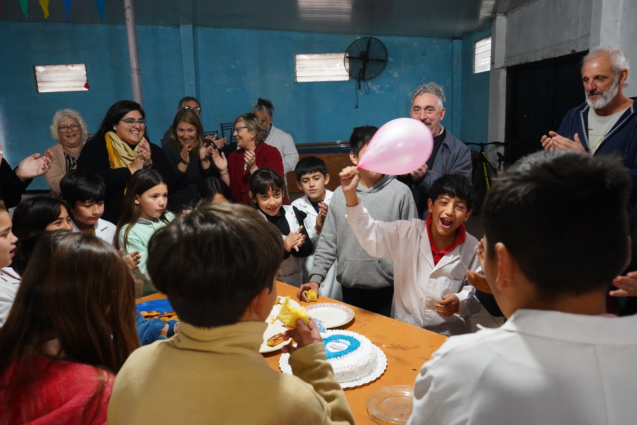 Luego fue el momento de compartir un desayuno con los presentes, entre ellos los alumnos y alumnas de cuarto año de la Escuela N 20. Hubo torta y el tradicional canto de feliz cumpleaños para este Punto Digital de Gowland y Agote.