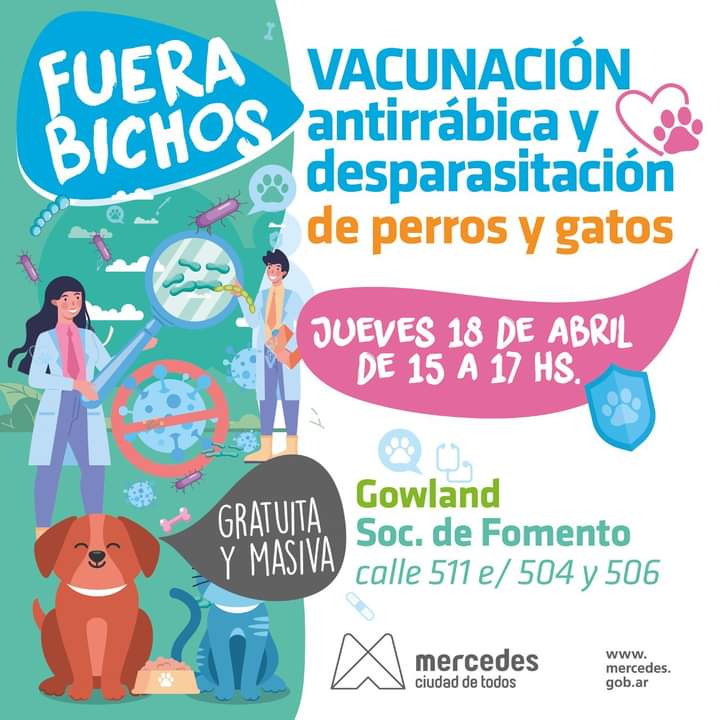 Entre las 15 y las 17 horas de este jueves se llevará adelante esta propuesta del municipio que tiene como finalidad la colocación de vacunas antirrábicas y desparasitación de perros y gatos. Vale destacar que se de manera gratuita para todos los vecinos de Gowland y Agote y de la zona.