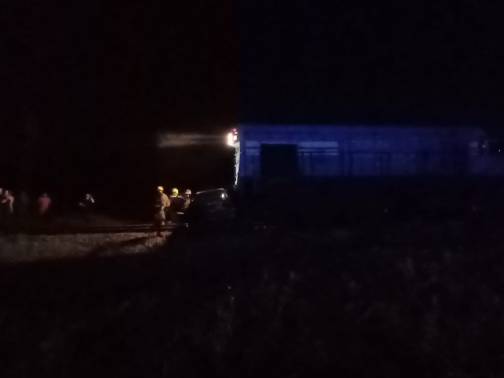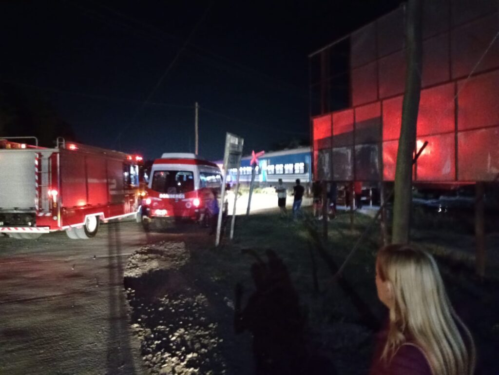 En nuestra localidad se vivió un fuerte acontecimiento y conmoción al producirse un violento choque entre un automóvil Ford Escort y una formación del ferrocarril Sarmiento en horas de la noche de este sábado.