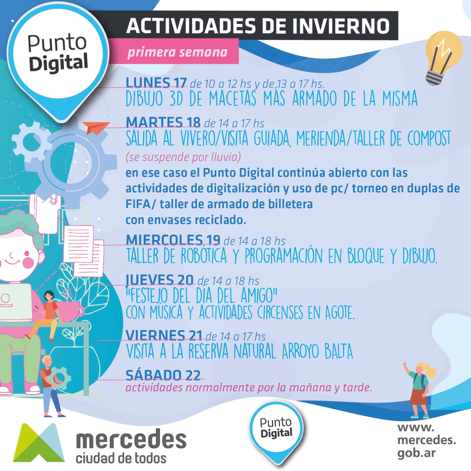 Ya el miércoles se concretará un taller de robó y programación en bloque y dibujo desde las 14 horas. El jueves se llevará adelante el festejo por el Día del Amigo con música y actividades circenses en Agote y el viernes se completa la semana con una visita al arroyo Balta.