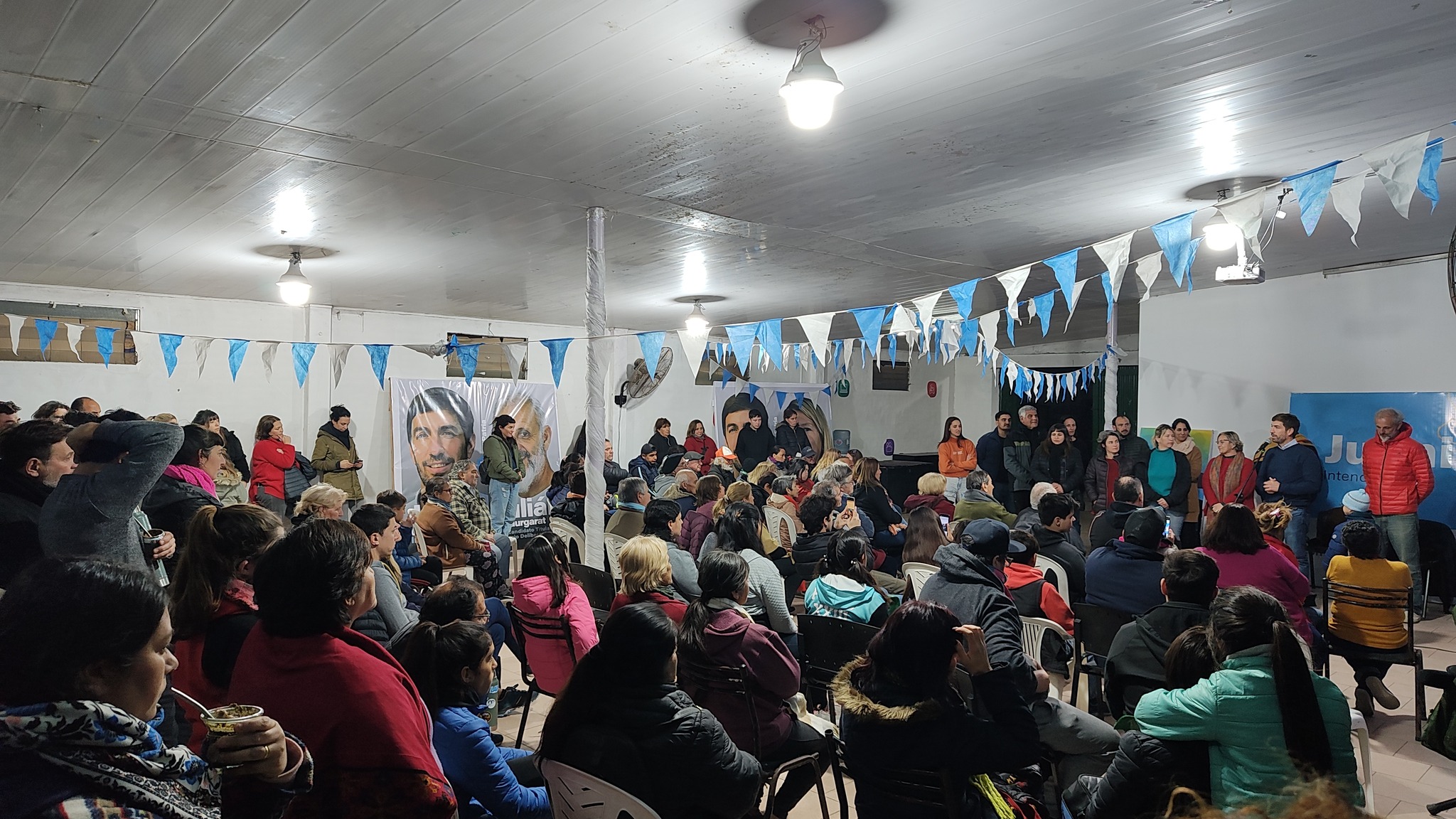 El martes a la noche Juani estuvo acompañado de compañeros de la lista como Mariana San Martín y Julián Inzaurgarat entre otros y la gente puso el clima cálido en una noche fresca.